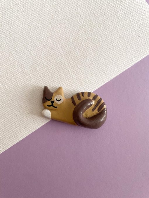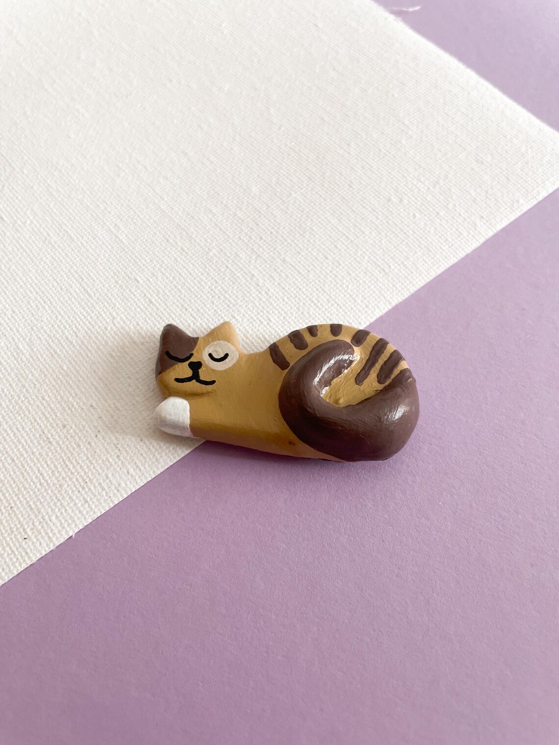 A small cat magnet made of clay. Handmade and painted with love. It is perfect as a decoration or small gift!