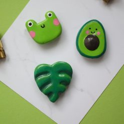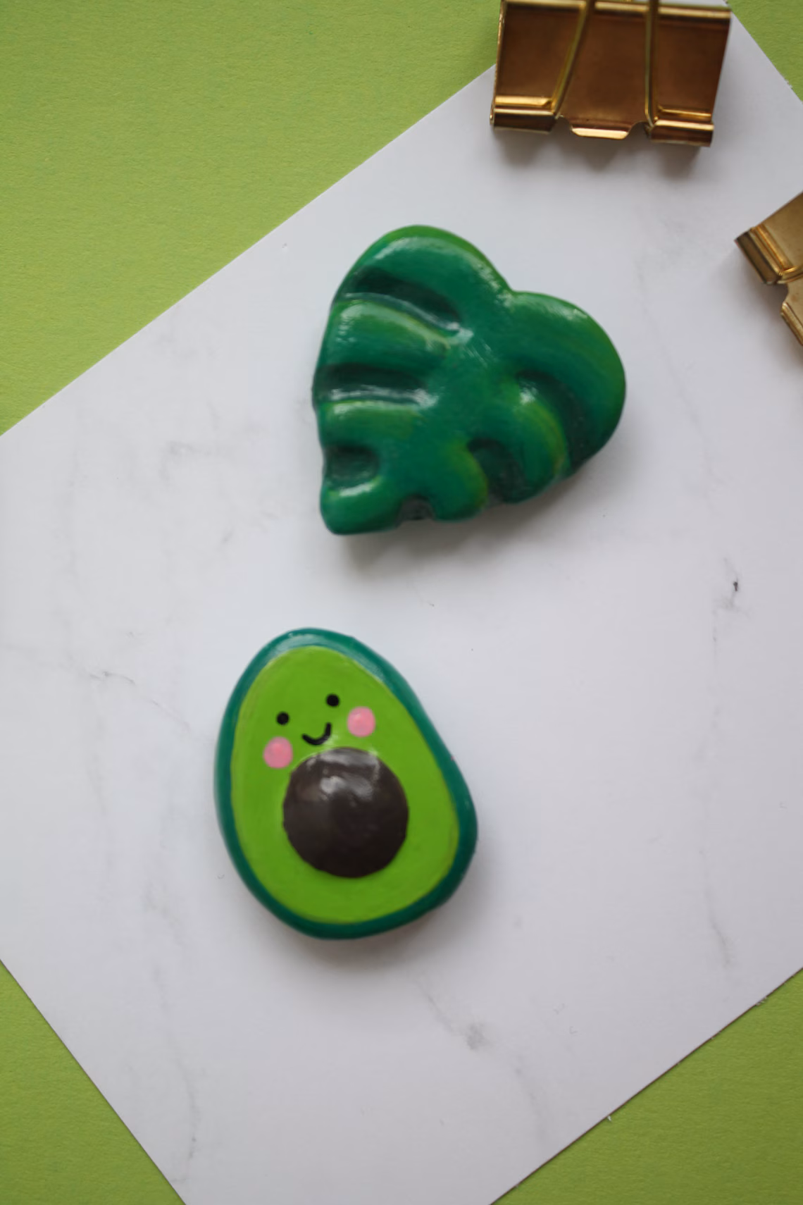A small avocado magnet made of clay. Handmade and painted with love. It is perfect as a decoration or small gift!