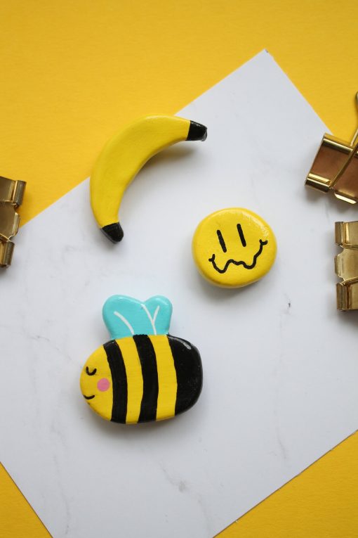 A small banana magnet made of clay. Handmade and painted with love. It is perfect as a decoration or small gift!